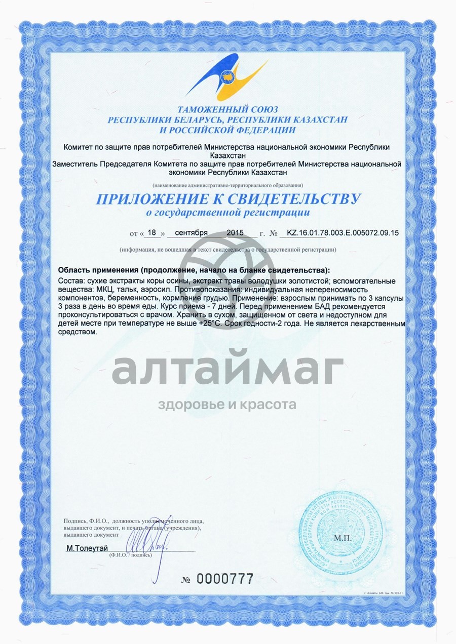 Экстракты коры осины, володушки золотистой; МКЦ, тальк, аэросил.